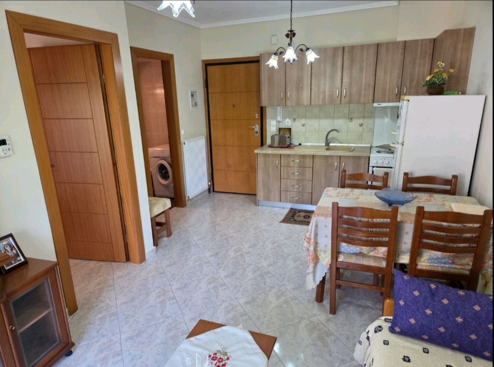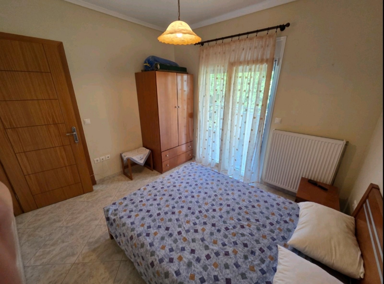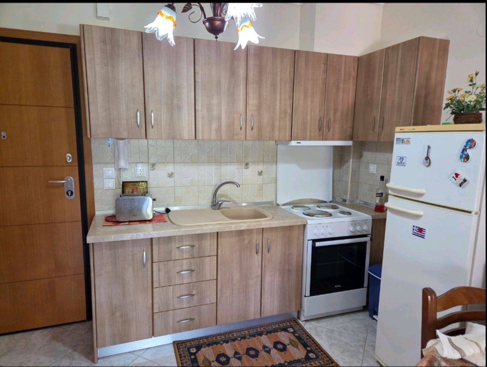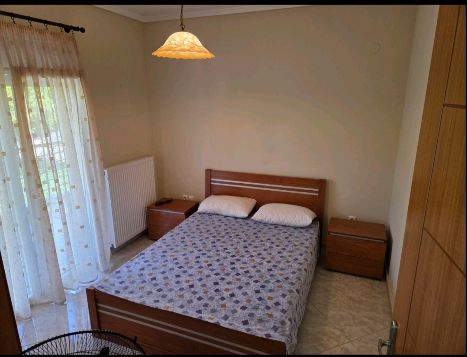 Apartman HARIS se nalazI u centru Nea Kalikratije, u ulici koja je paralelna sa glavnom pešačkom zonom i koja se spušta ka moru i plaži. Od mora i gradske plaže je udaljena oko 250 metara. Apartman se nalazi na prvom spratu zgrade koja je namenski izgrađena za izdavanje stanova i apartmana i ima terasu sa pogledom ka dvorištu i parking prostoru koji je dostupan gostima apartmana. Sastoje se od dnevnog boravka sa prostranom kuhinjom, spavaće sobe sa bračnim ležajem, kupatila i terase na koju se izlazi iz dnevnog boravka i spavaće sobe. U dnevnom boravku se nalaze dva kauča na razvlačenje i kuhinja opremljena šporetom, velikim frižiderom i posuđem neophodnim za pripremanje hrane. Kuhinja ima i trpezarijski sto za četiri osobe. Kupatilo je sa tuš kadom a ima i mašinu za pranje veša. Apartman poseduje TV aparat i klima uređaj u dnevnom boravku. Korišćenje klima uređaja je uključeno u cenu najma apartmana. Objekat poseduje wi-fi internet konekciju a u dvorištu objekta je parking prostor (korišćenje bez naplate).